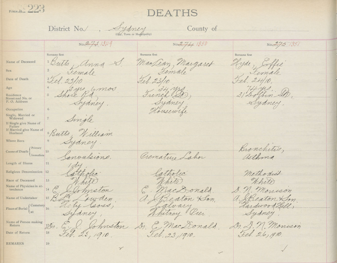 Death Registration: Year: 1910 book: 3 page: 223 number: 1349