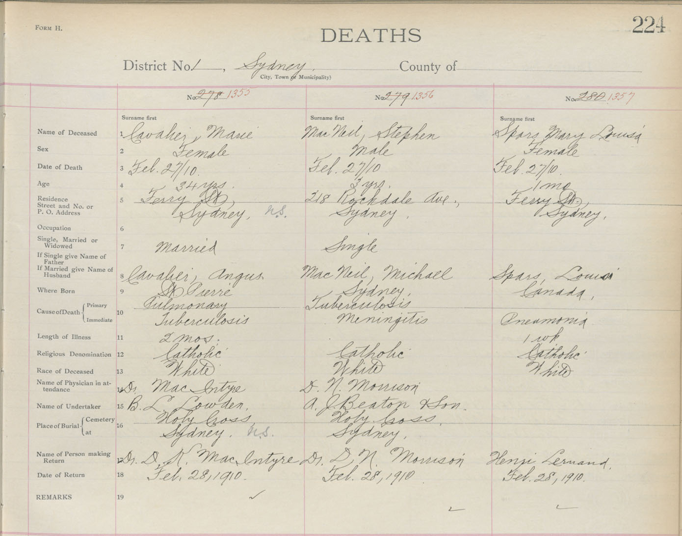 Death Registration: Year: 1910 book: 3 page: 224 number: 1355