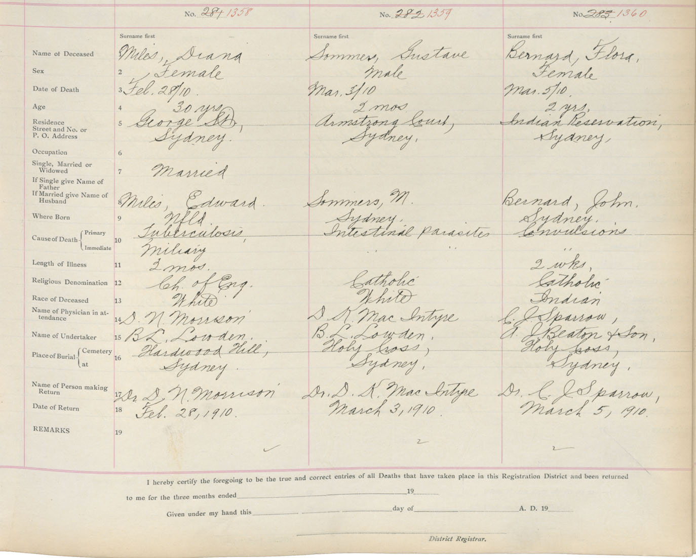 Death Registration: Year: 1910 book: 3 page: 224 number: 1360