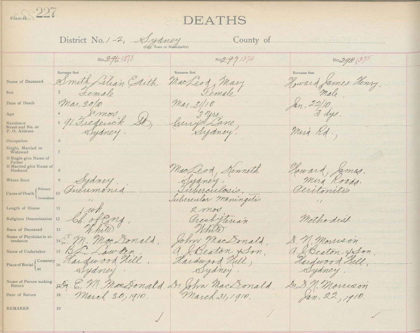 Death Registration: Year: 1910 book: 3 page: 227 number: 1375