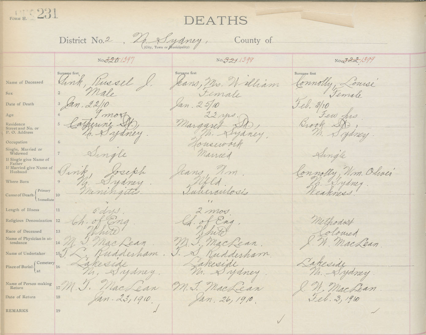 Death Registration: Year: 1910 book: 3 page: 231 number: 1399