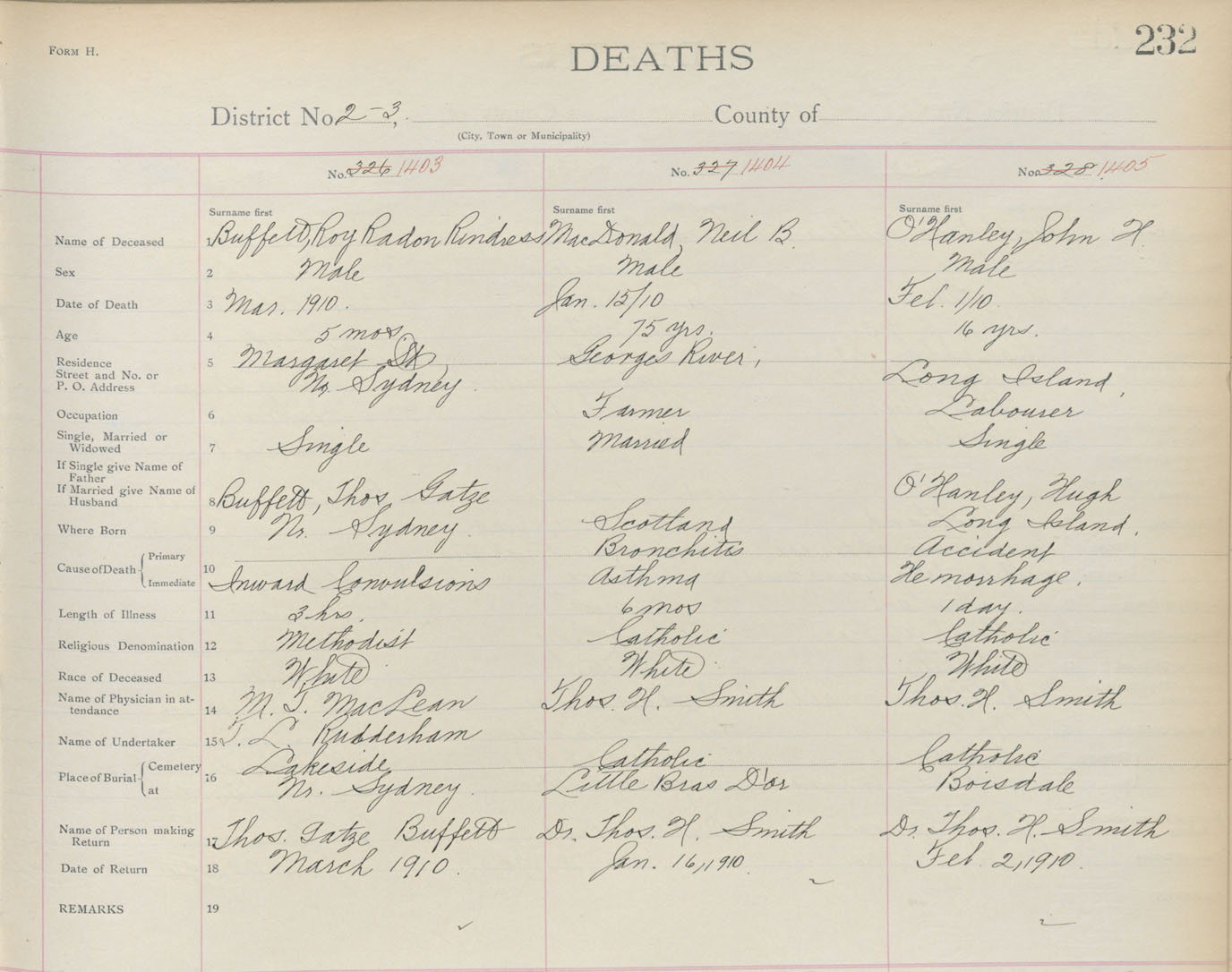 Death Registration: Year: 1910 book: 3 page: 232 number: 1404