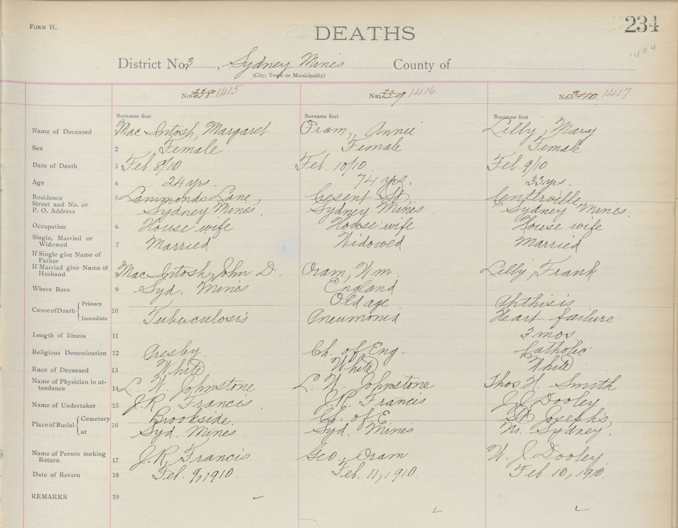 Death Registration: Year: 1910 book: 3 page: 234 number: 1415