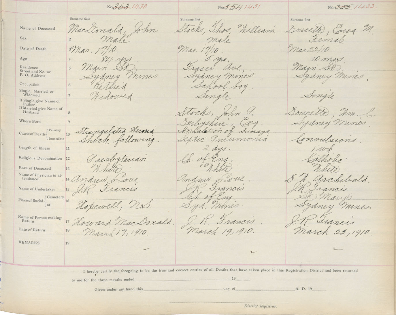 Death Registration: Year: 1910 book: 3 page: 236 number: 1430
