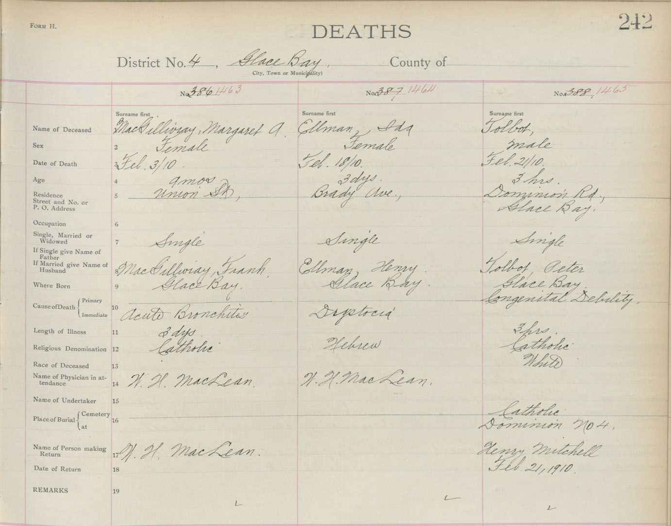 Death Registration: Year: 1910 book: 3 page: 242 number: 1465