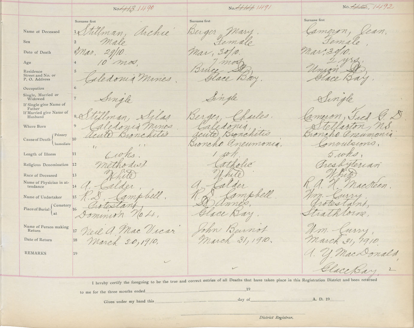 Death Registration: Year: 1910 book: 3 page: 246 number: 1490