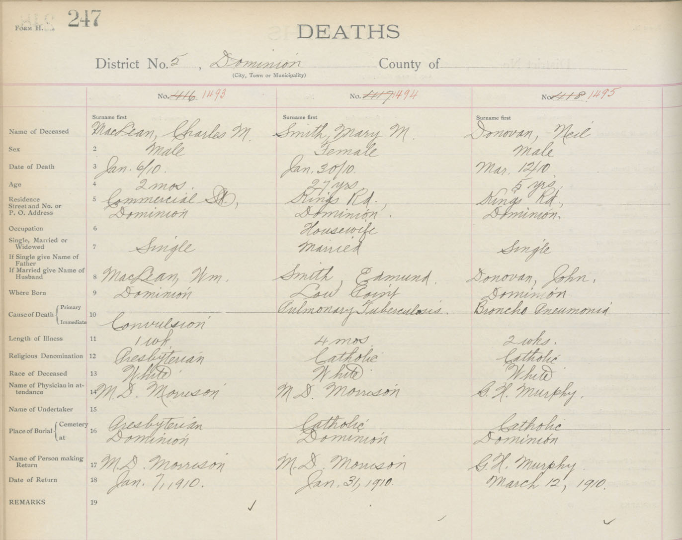Death Registration: Year: 1910 book: 3 page: 247 number: 1493