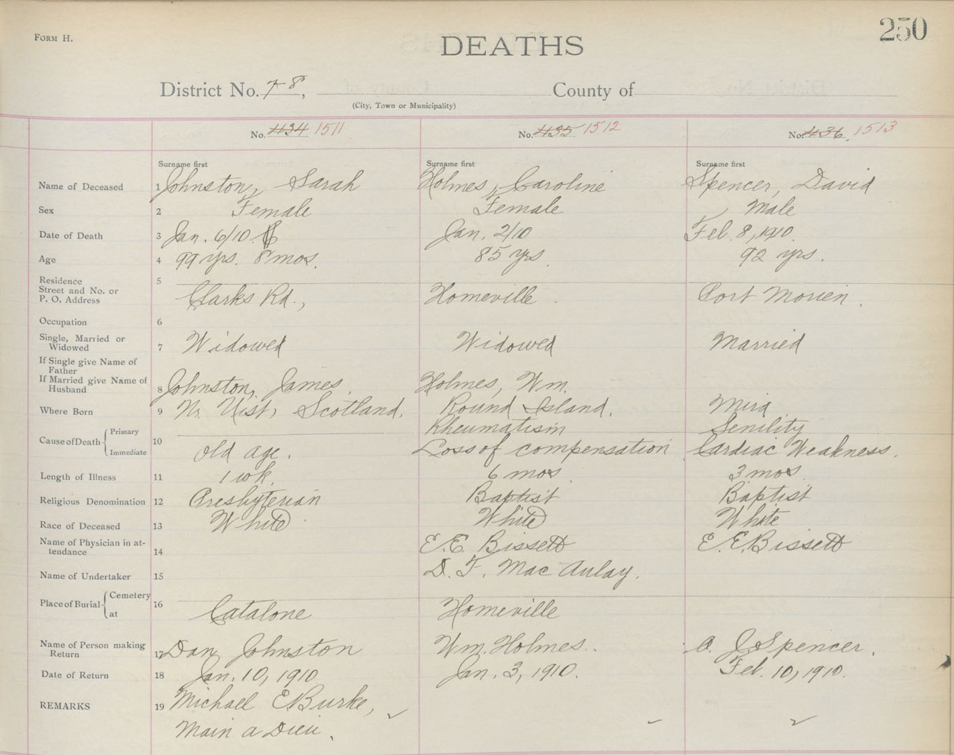 Death Registration: Year: 1910 book: 3 page: 250 number: 1513