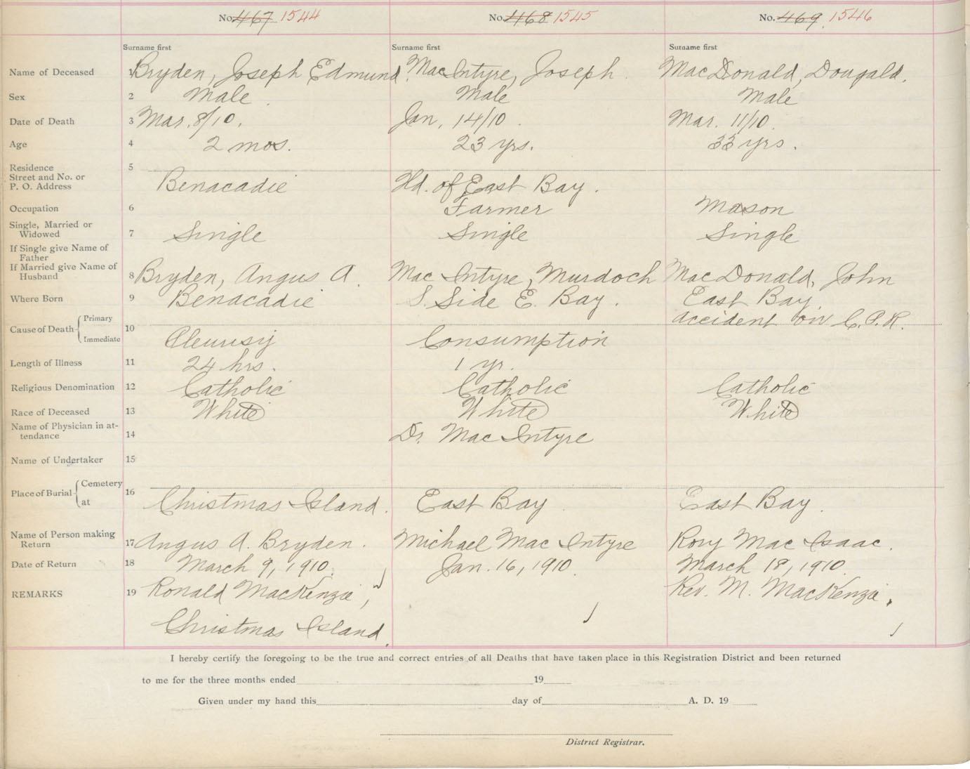 Death Registration: Year: 1910 book: 3 page: 255 number: 1546