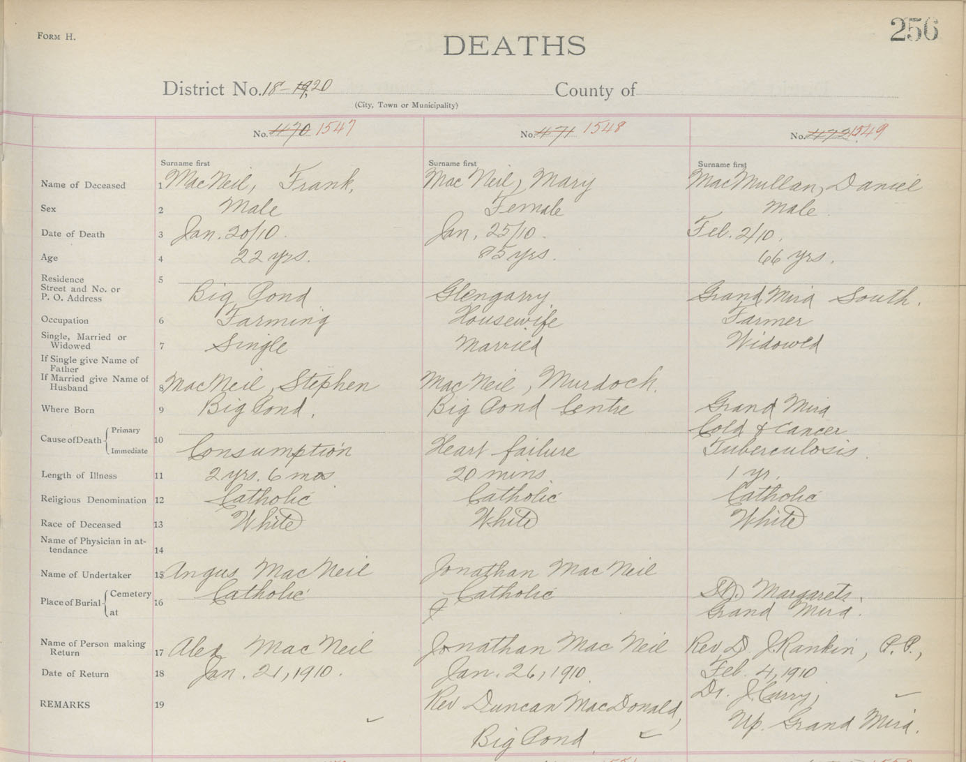 Death Registration: Year: 1910 book: 3 page: 256 number: 1547
