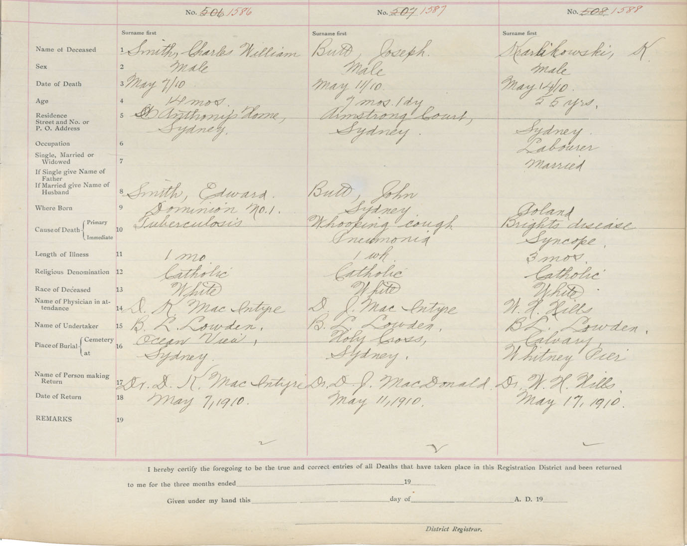 Death Registration: Year: 1910 book: 3 page: 262 number: 1588
