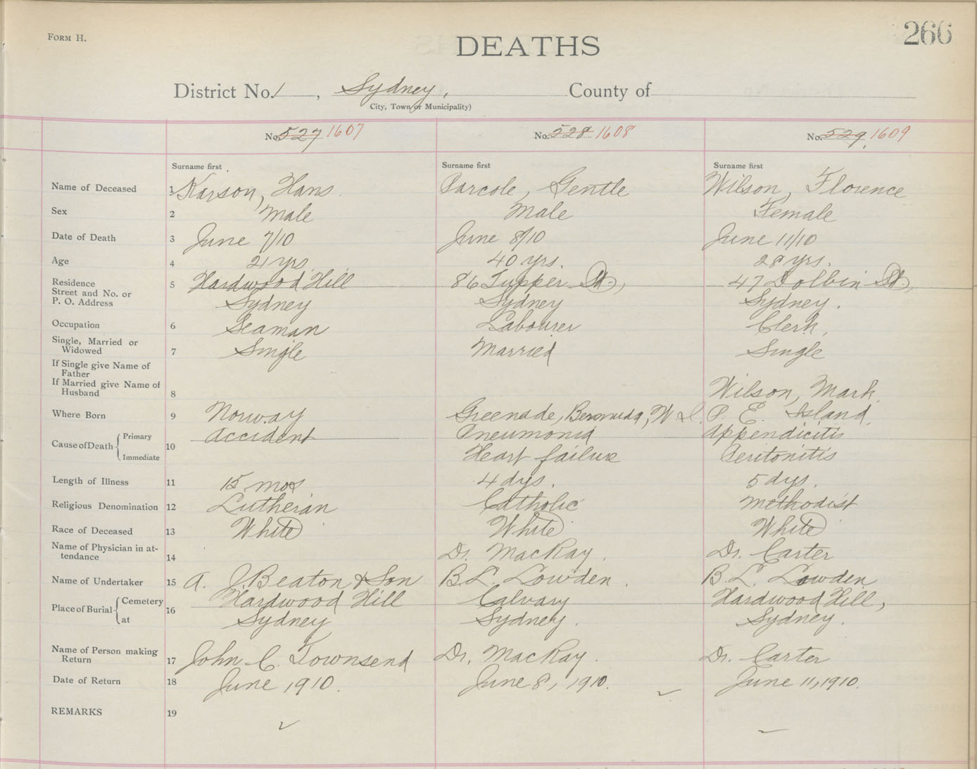 Death Registration: Year: 1910 book: 3 page: 266 number: 1609