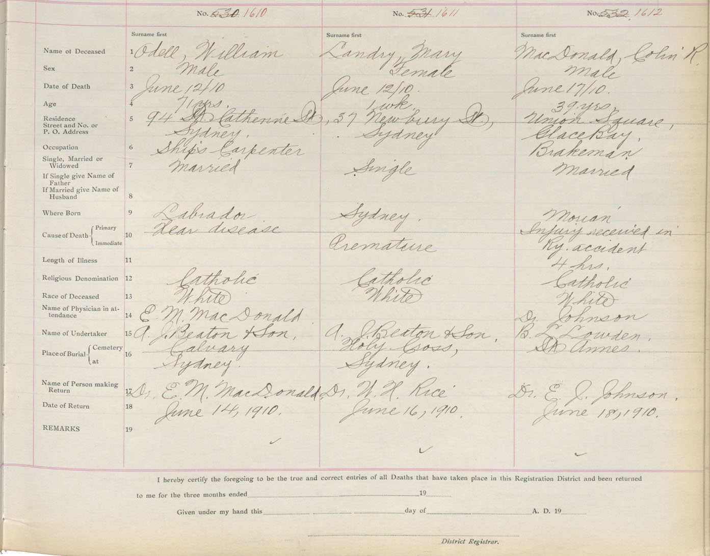 Death Registration: Year: 1910 book: 3 page: 266 number: 1612