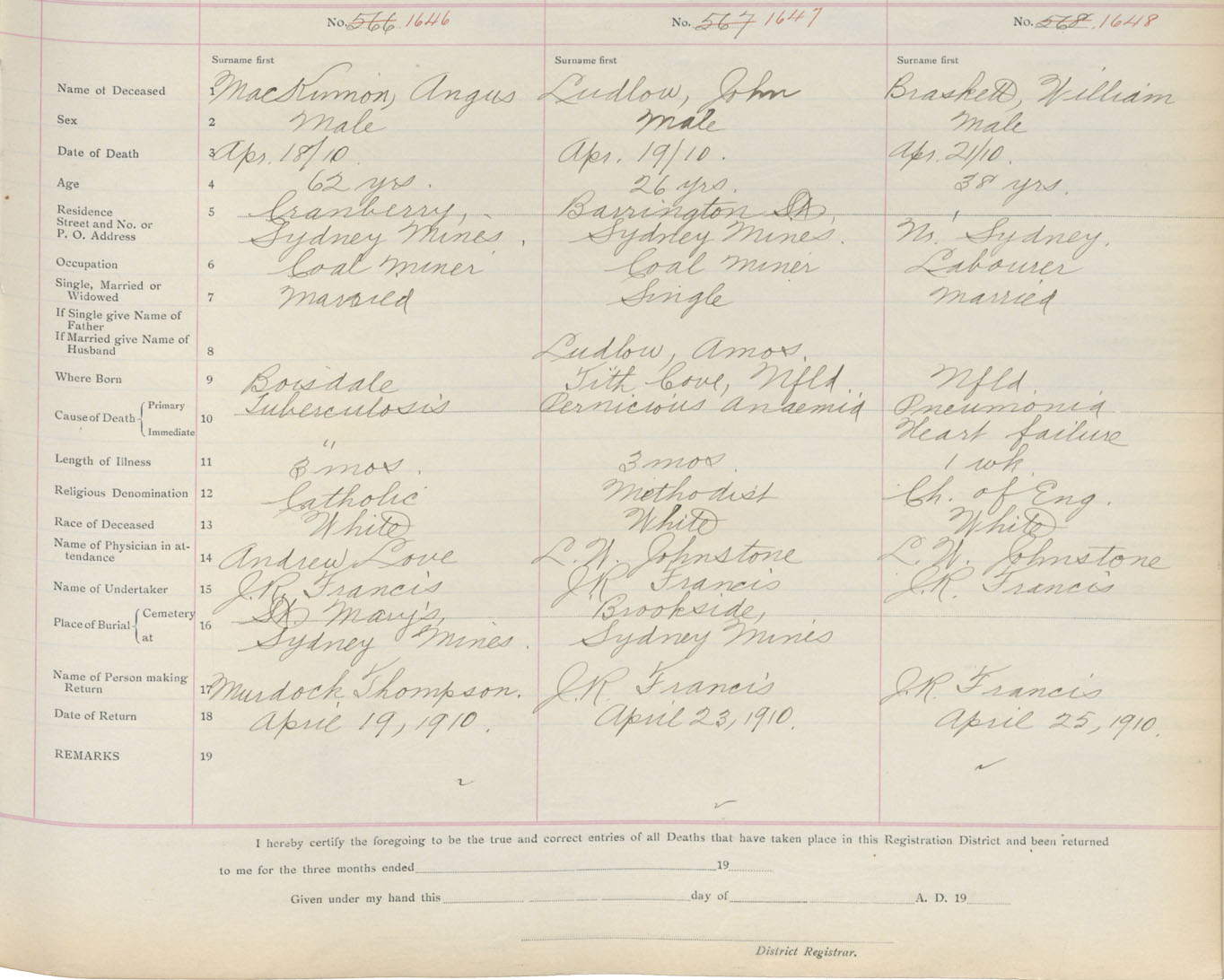 Death Registration: Year: 1910 book: 3 page: 272 number: 1648