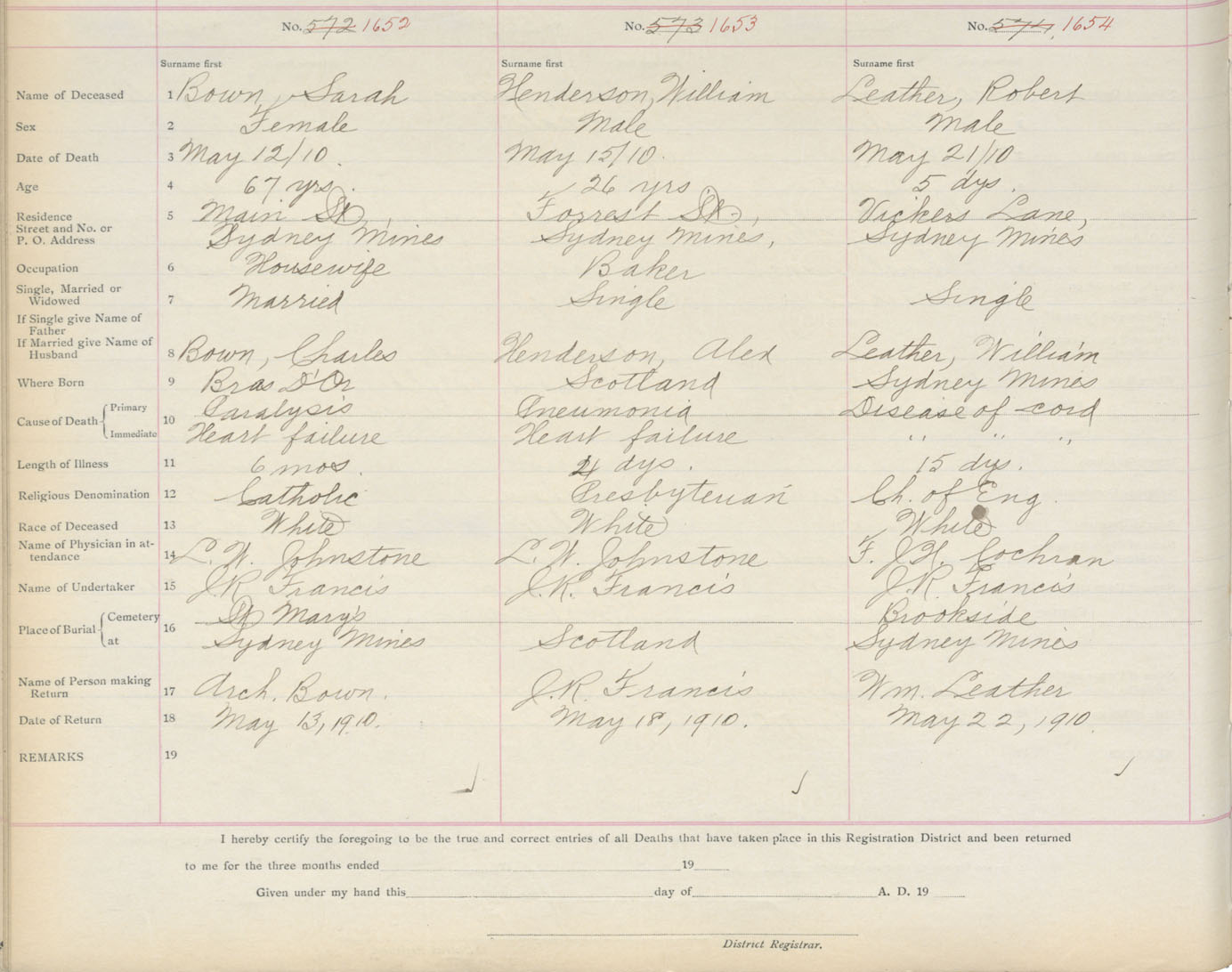 Death Registration: Year: 1910 book: 3 page: 273 number: 1654
