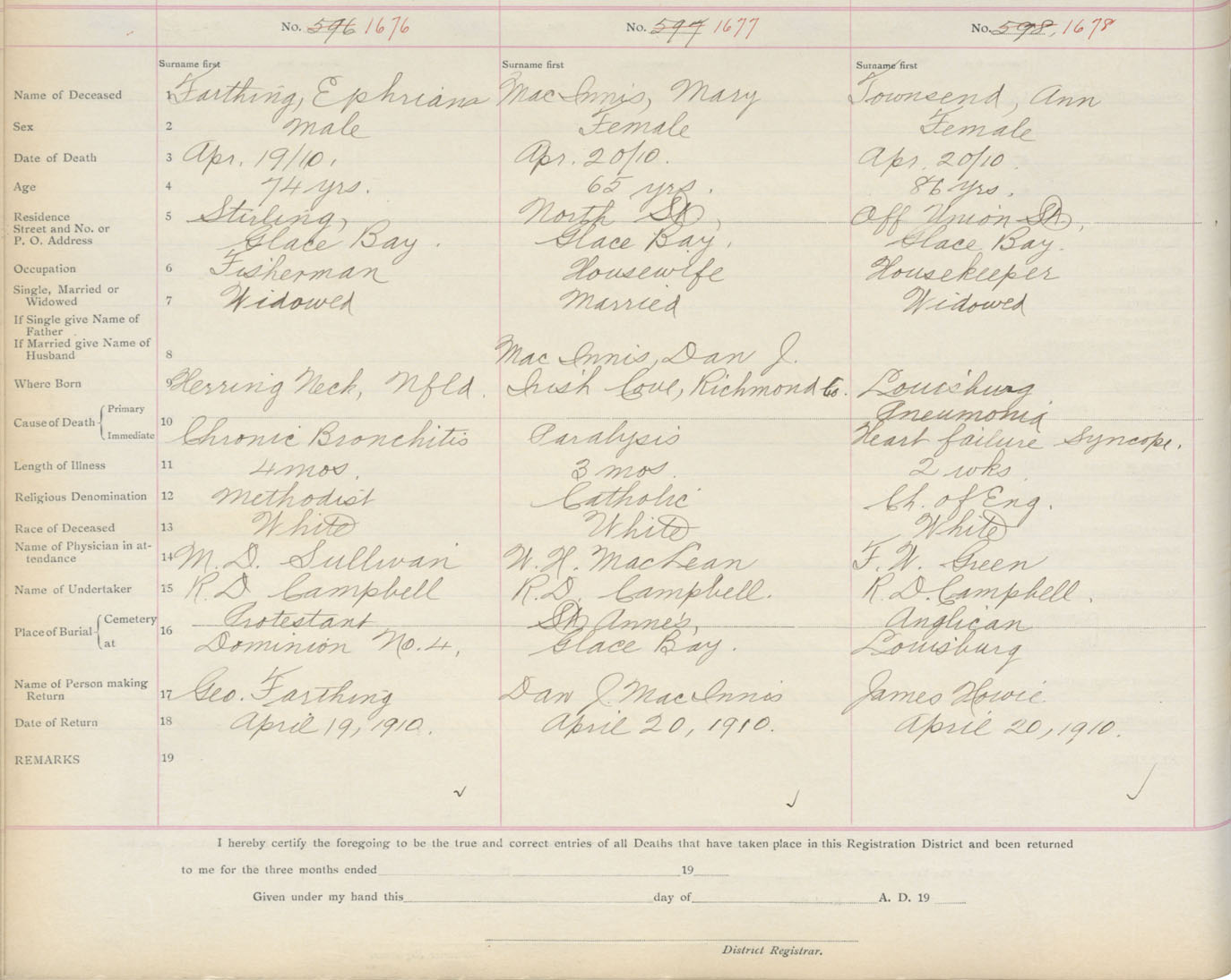 Death Registration: Year: 1910 book: 3 page: 277 number: 1678