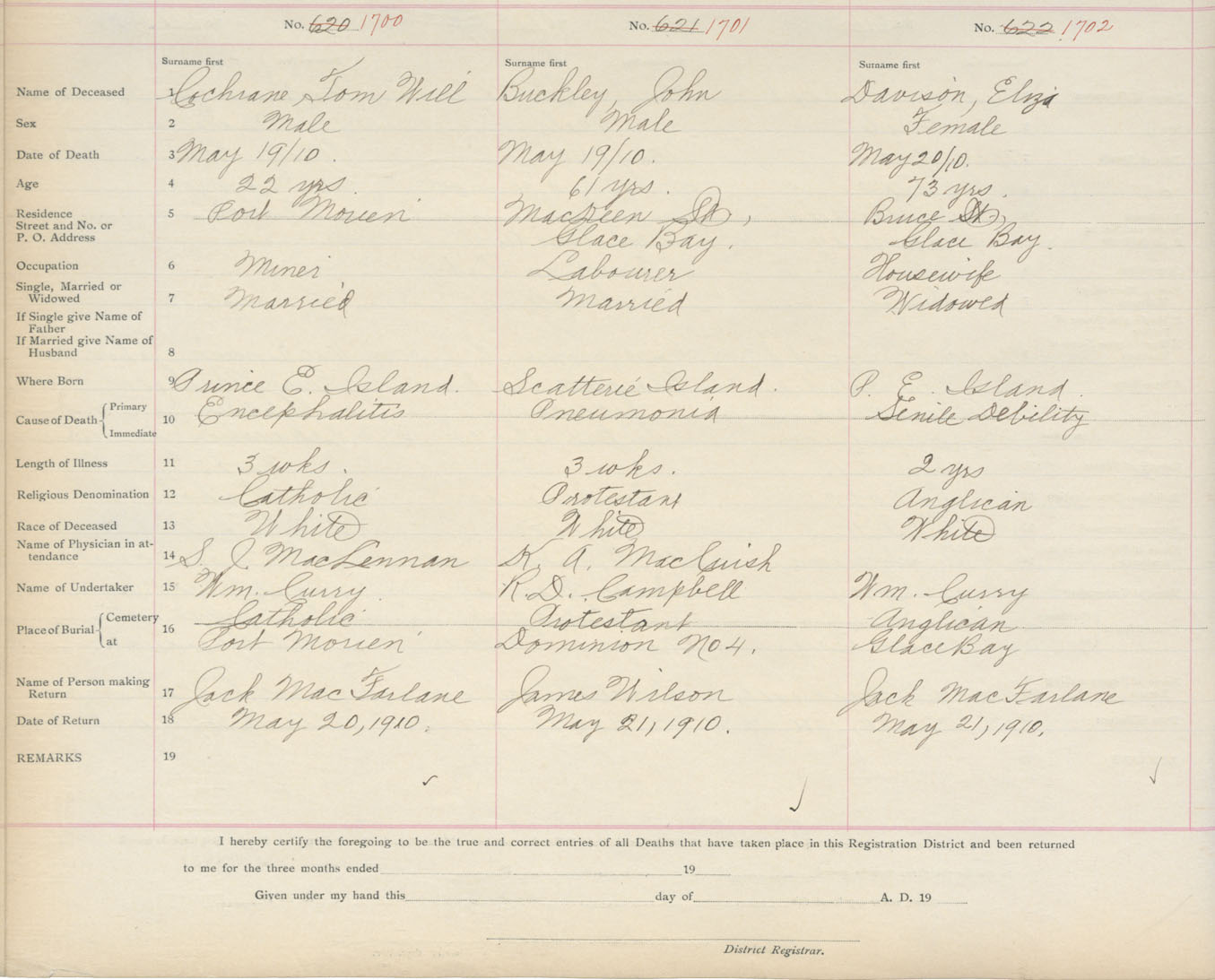 Death Registration: Year: 1910 book: 3 page: 281 number: 1702