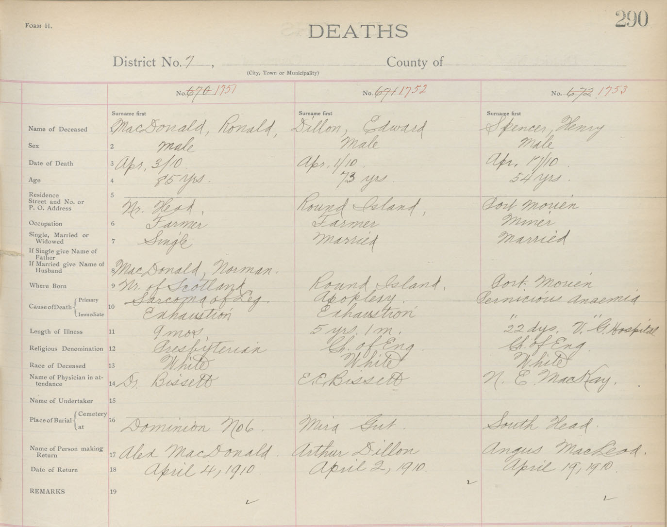 Death Registration: Year: 1910 book: 3 page: 290 number: 1751