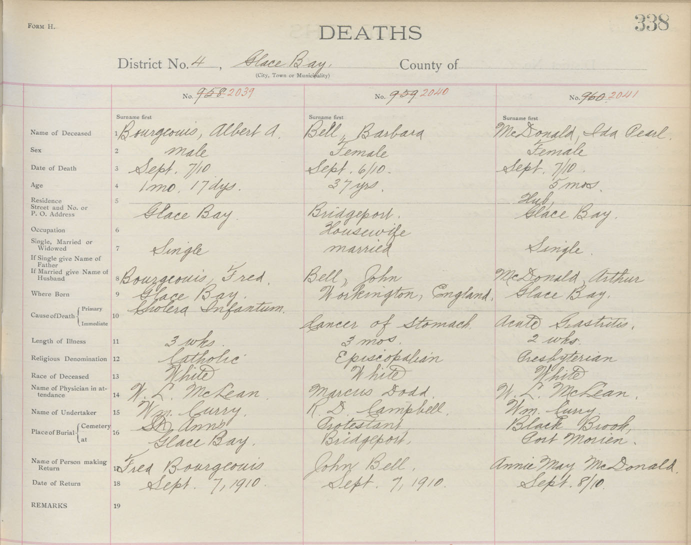 Male Death Registration: Year: 1910 book: 3 page: 338 number: 2039