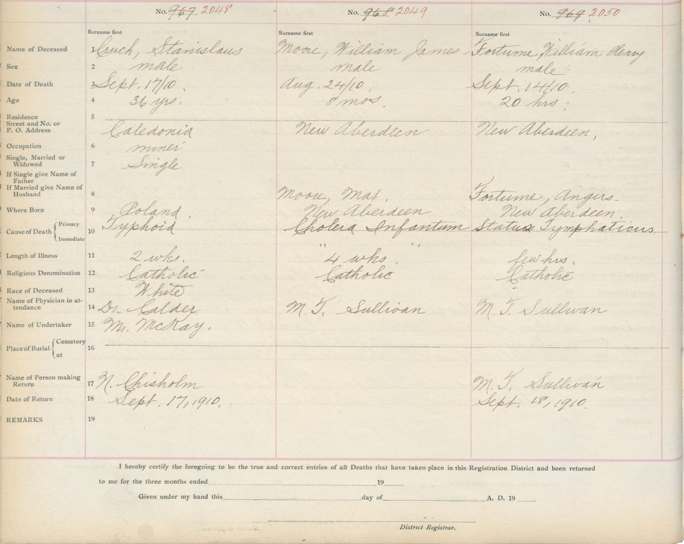 Death Registration: Year: 1910 book: 3 page: 339 number: 2050