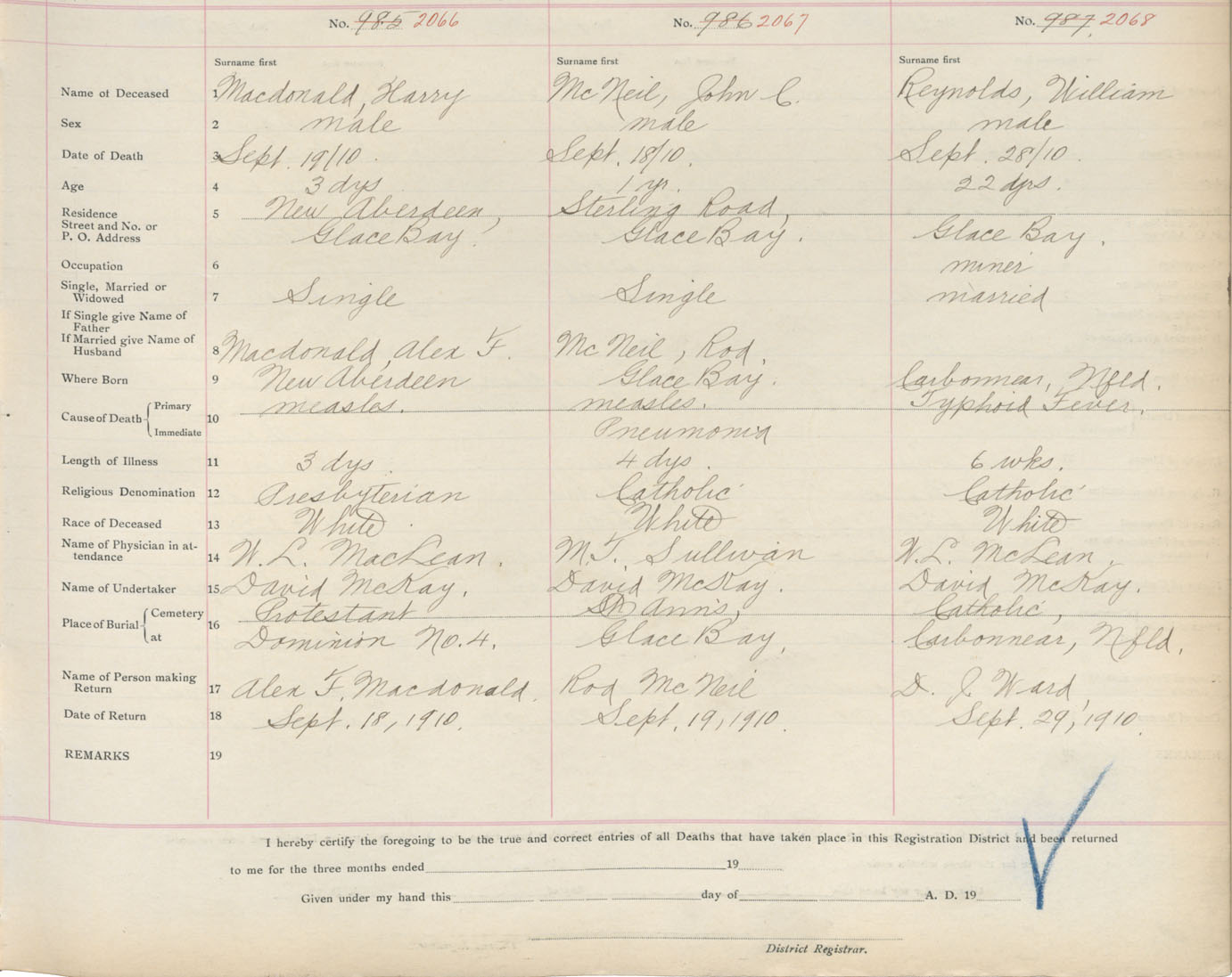 Death Registration: Year: 1910 book: 3 page: 342 number: 2066