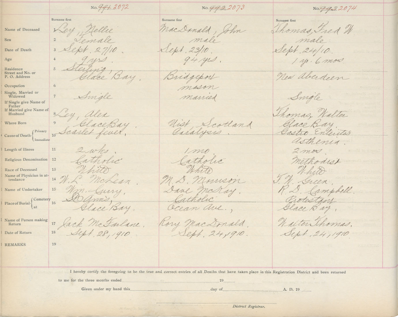 Death Registration: Year: 1910 book: 3 page: 343 number: 2073