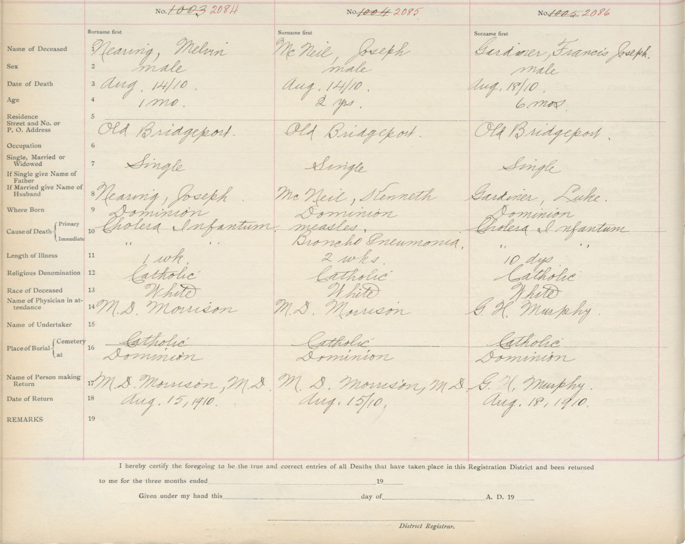 Death Registration: Year: 1910 book: 3 page: 345 number: 2084