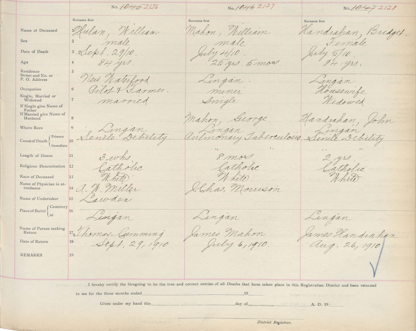 Death Registration: Year: 1910 book: 3 page: 352 number: 2128
