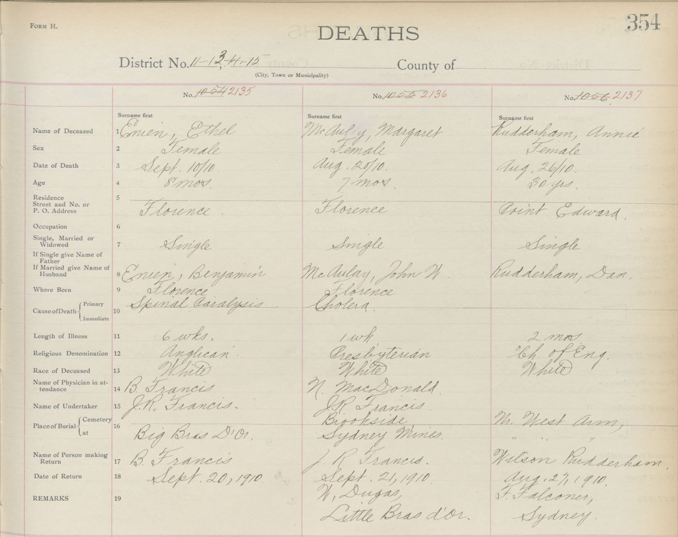 Death Registration: Year: 1910 book: 3 page: 354 number: 2135