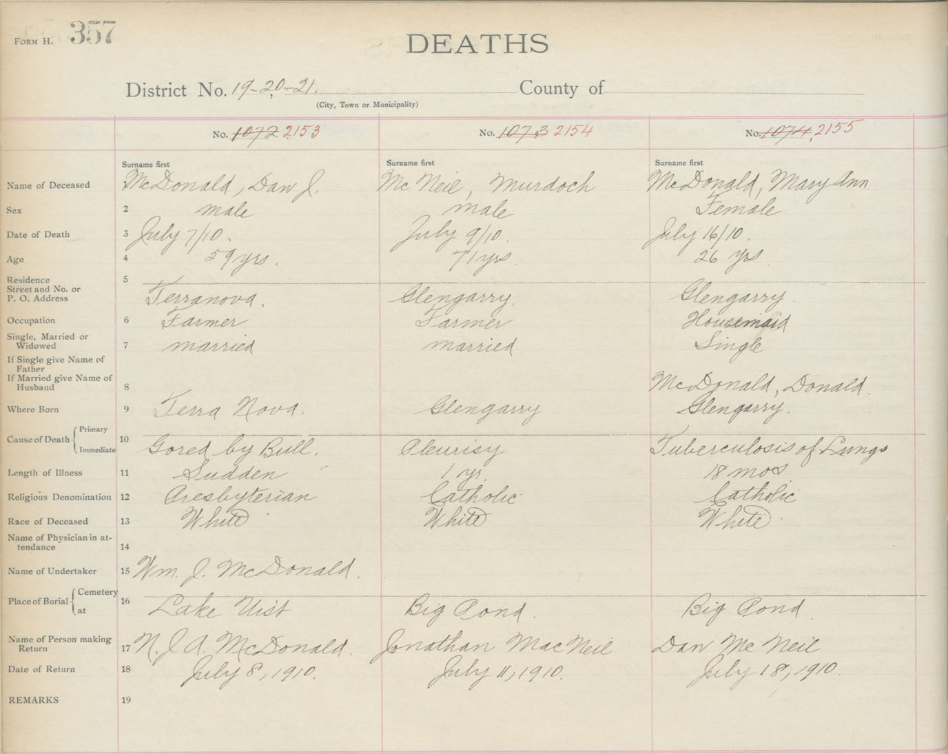 Death Registration: Year: 1910 book: 3 page: 357 number: 2153