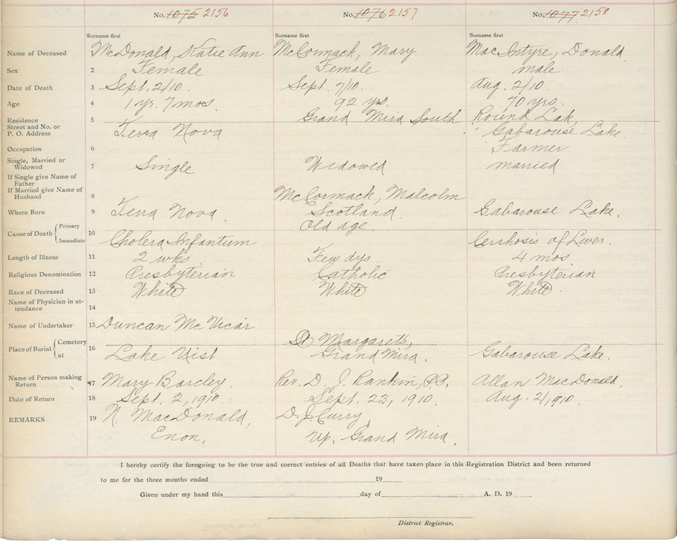 Death Registration: Year: 1910 book: 3 page: 357 number: 2156