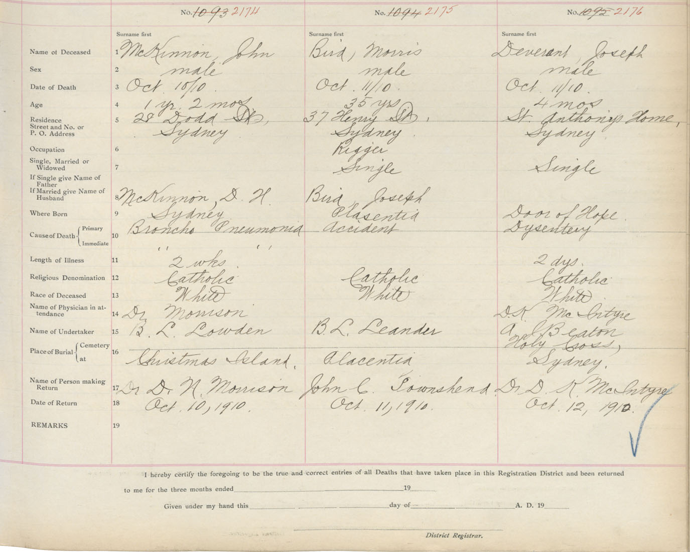 Death Registration: Year: 1910 book: 3 page: 360 number: 2174