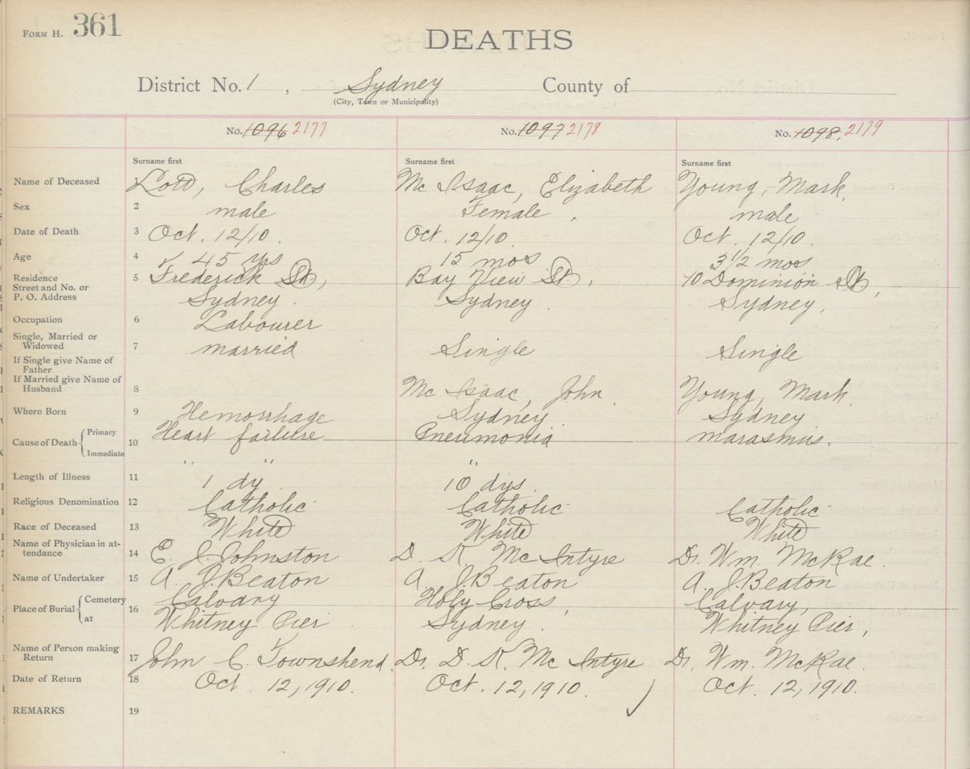 Death Registration: Year: 1910 book: 3 page: 361 number: 2177