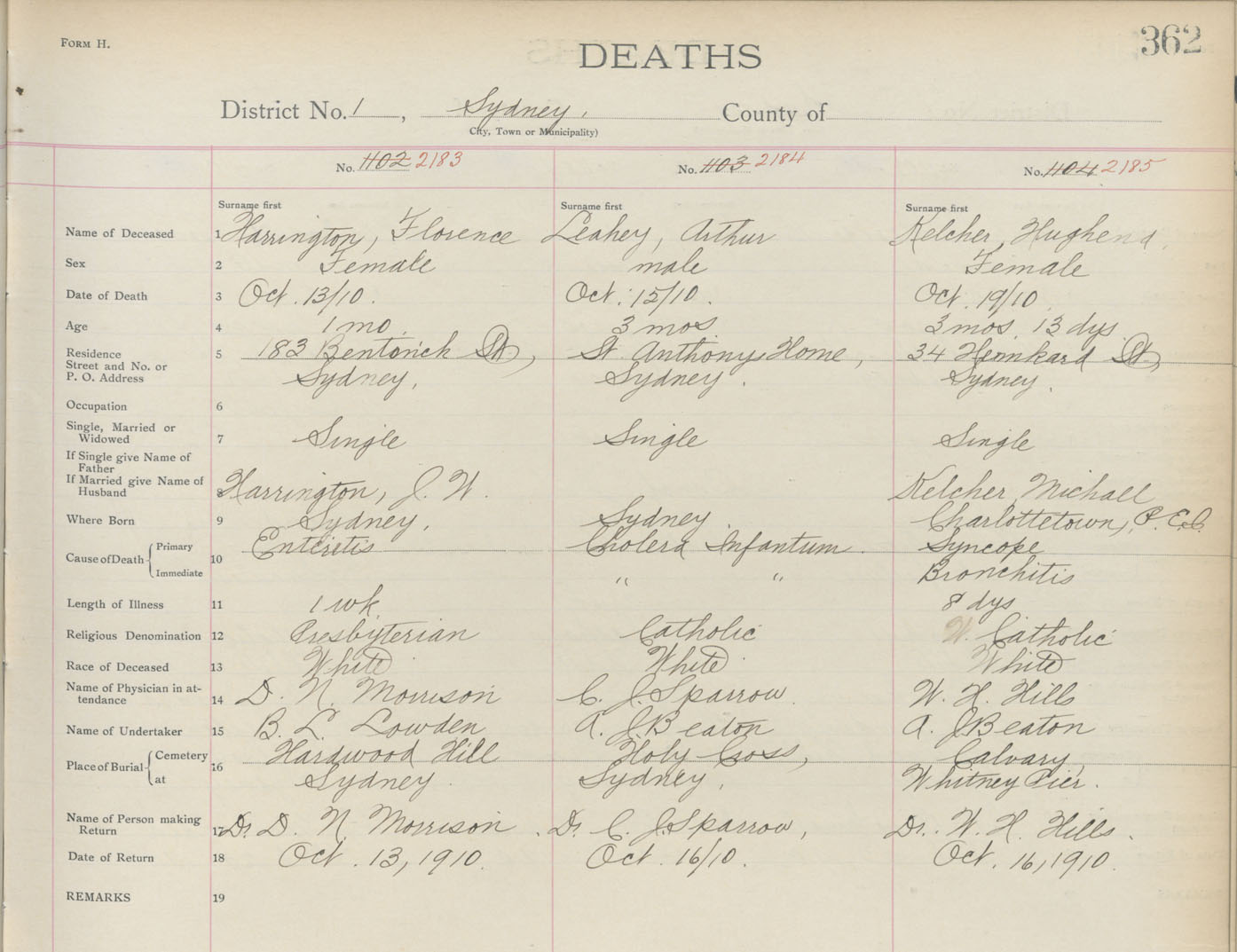 Death Registration: Year: 1910 book: 3 page: 362 number: 2183