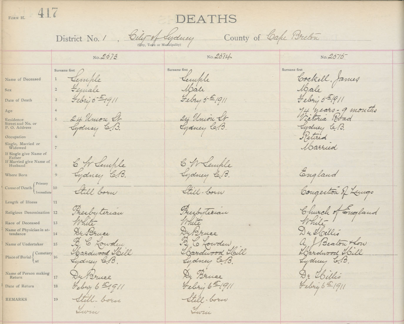 Death Registration: Year: 1911 book: 3 page: 417 number: 2515