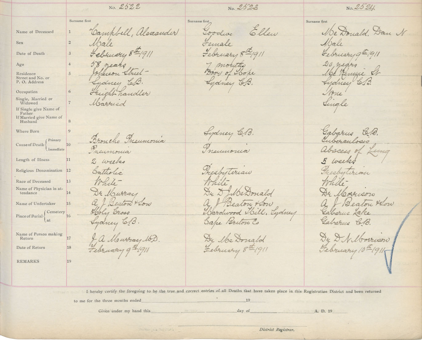 Death Registration: Year: 1911 book: 3 page: 418 number: 2524