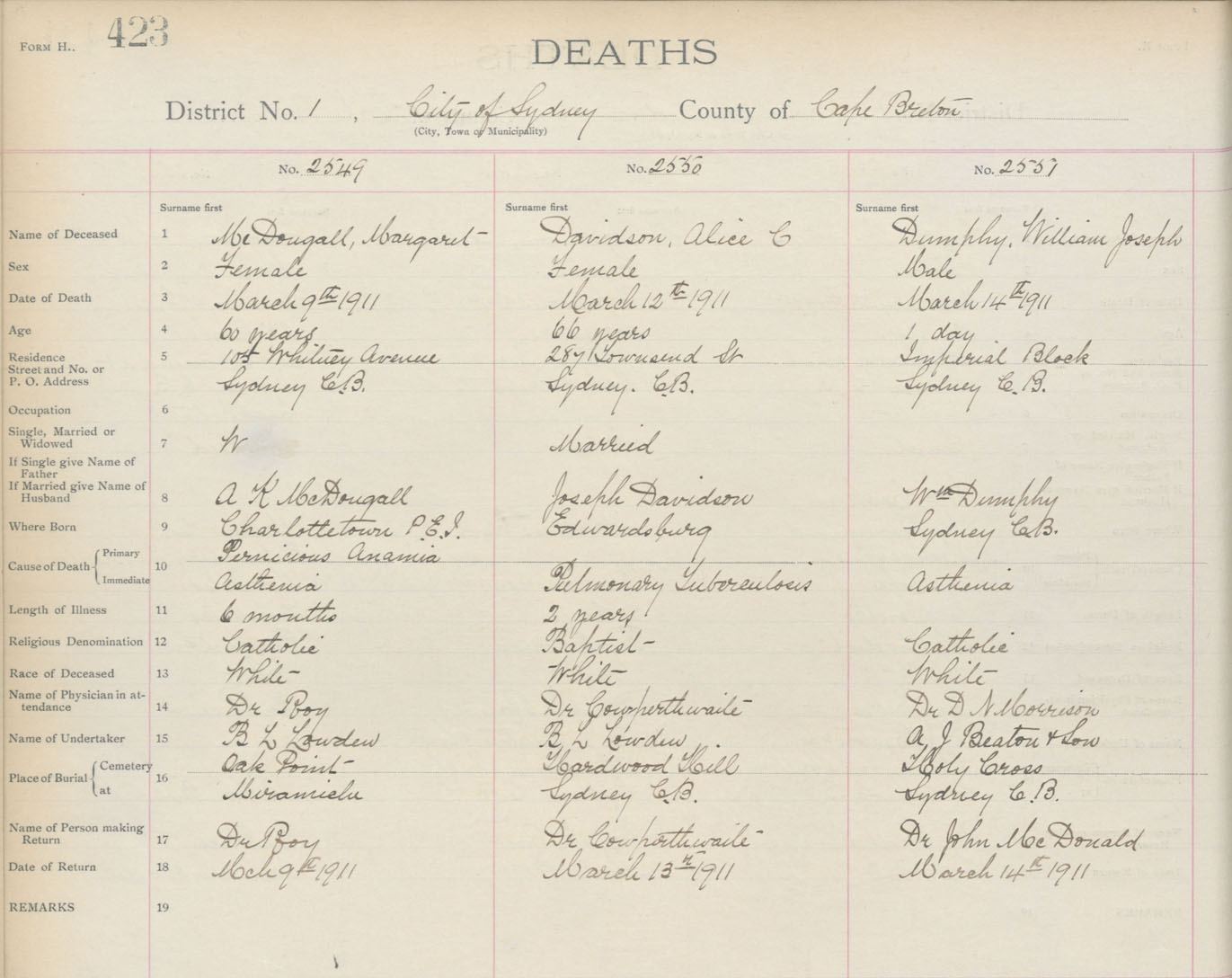 Death Registration: Year: 1910 book: 3 page: 423 number: 2549