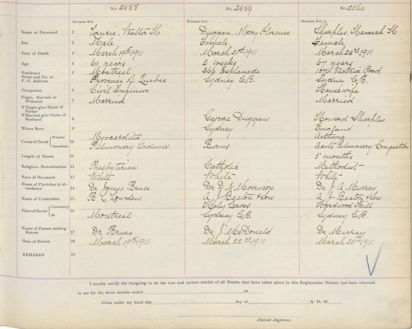 Death Registration: Year: 1911 book: 3 page: 424 number: 2558