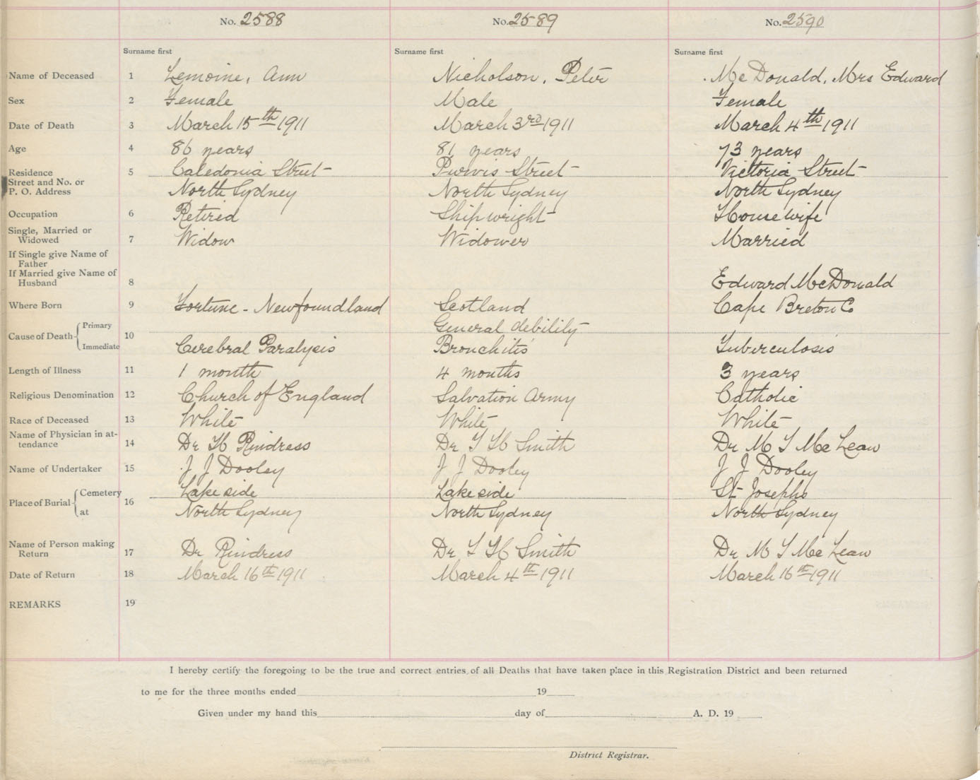 Death Registration: Year: 1911 book: 3 page: 429 number: 2588