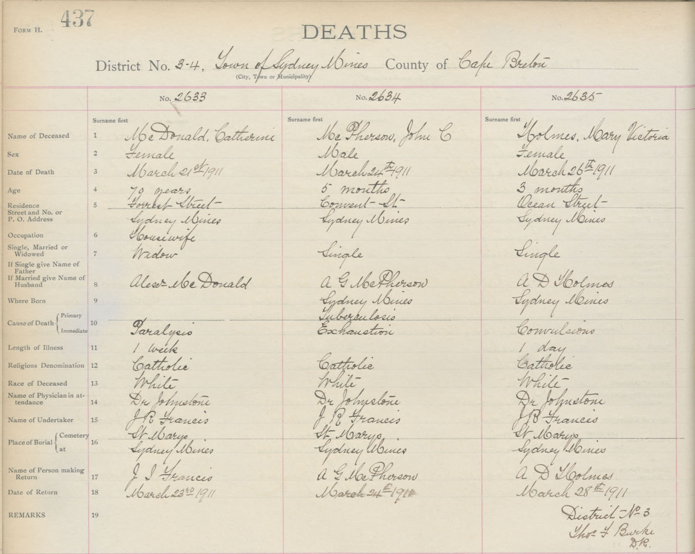 Death Registration: Year: 1911 book: 3 page: 437 number: 2635