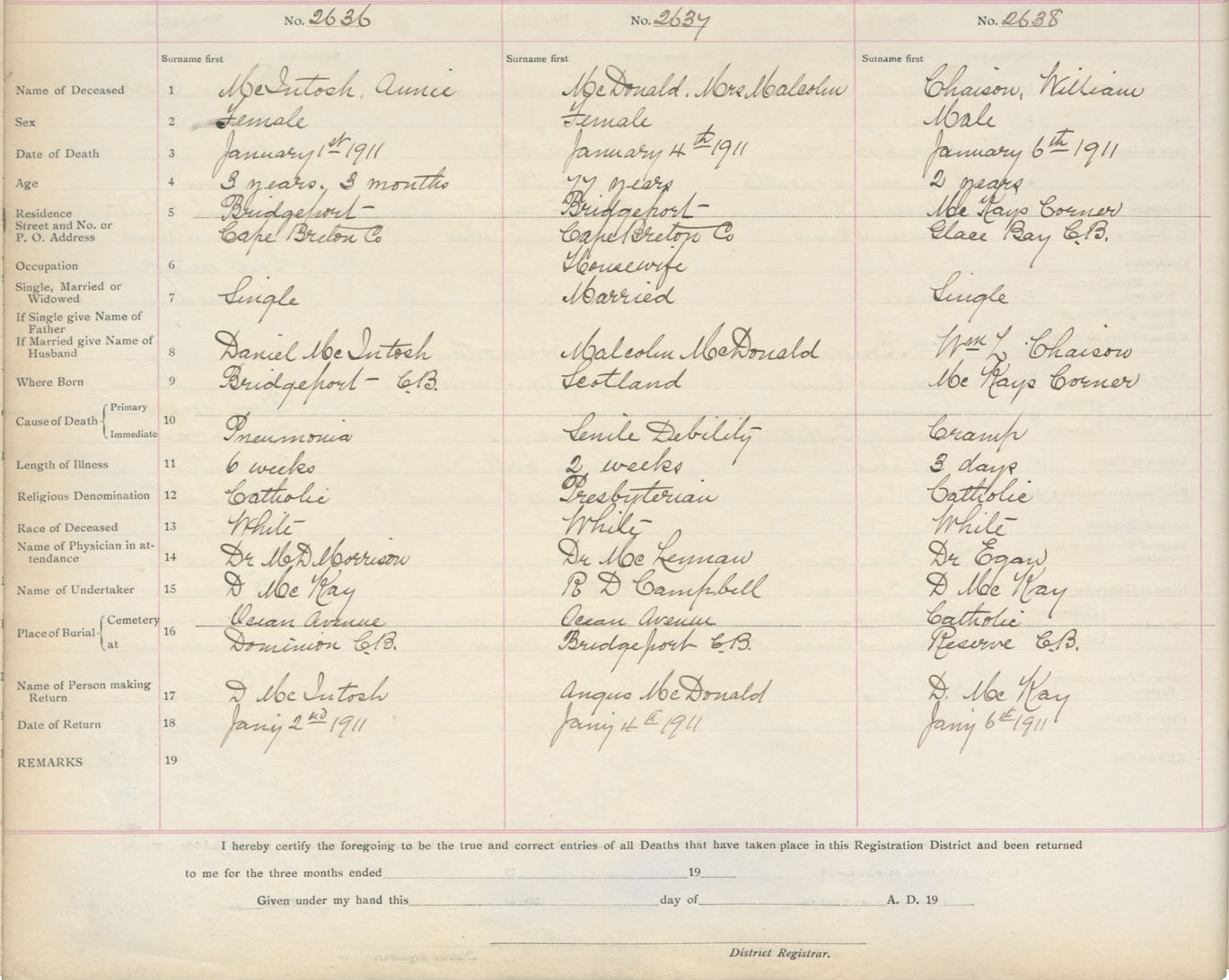 Death Registration: Year: 1911 book: 3 page: 437 number: 2638