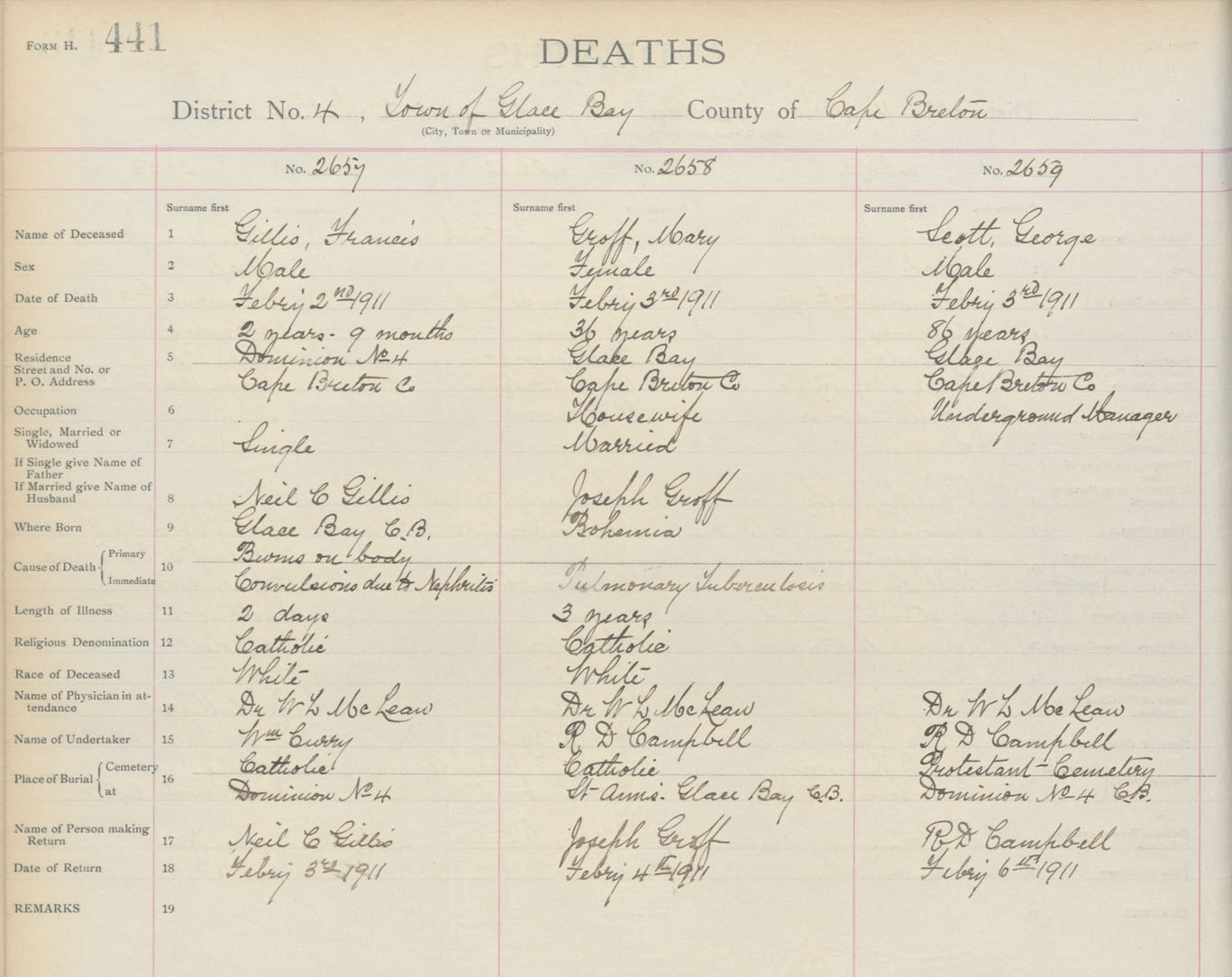 Death Registration: Year: 1911 book: 3 page: 441 number: 2659