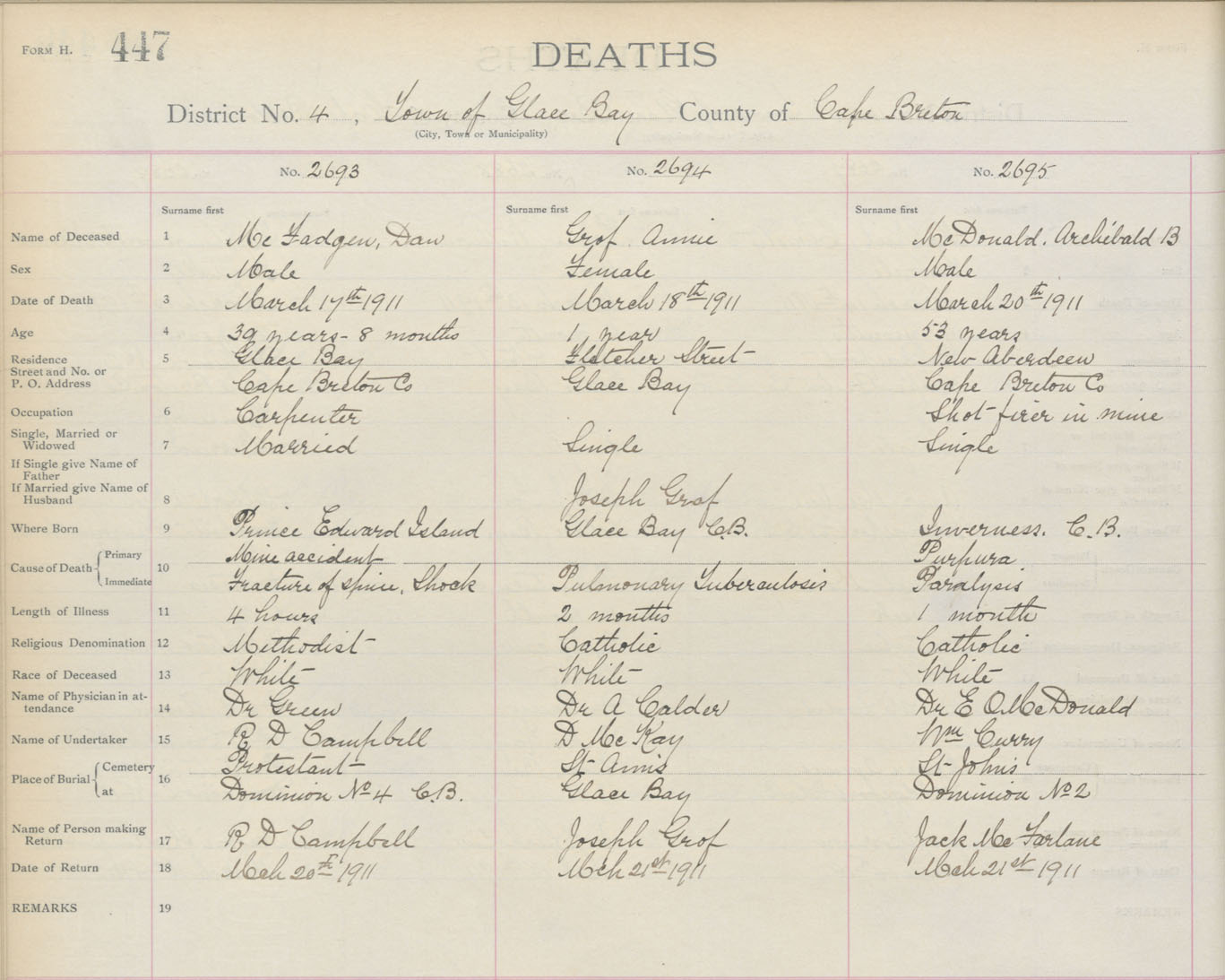 Death Registration: Year: 1911 book: 3 page: 447 number: 2695
