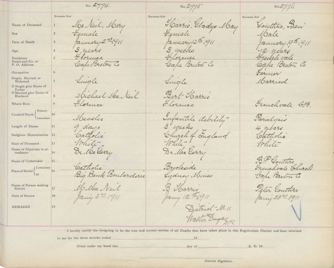 Death Registration: Year: 1911 book: 3 page: 460 number: 2774