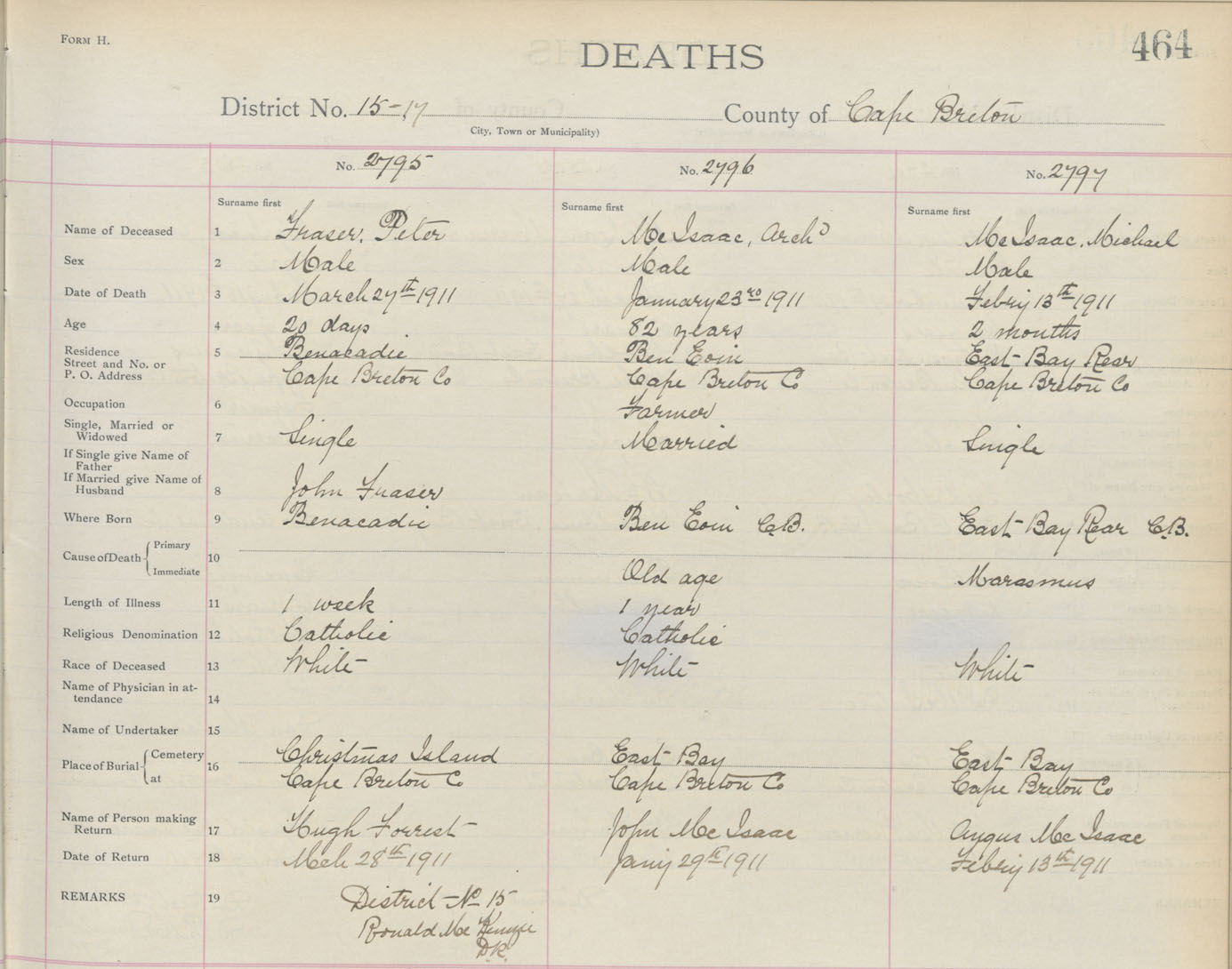 Death Registration: Year: 1911 book: 3 page: 464 number: 2797
