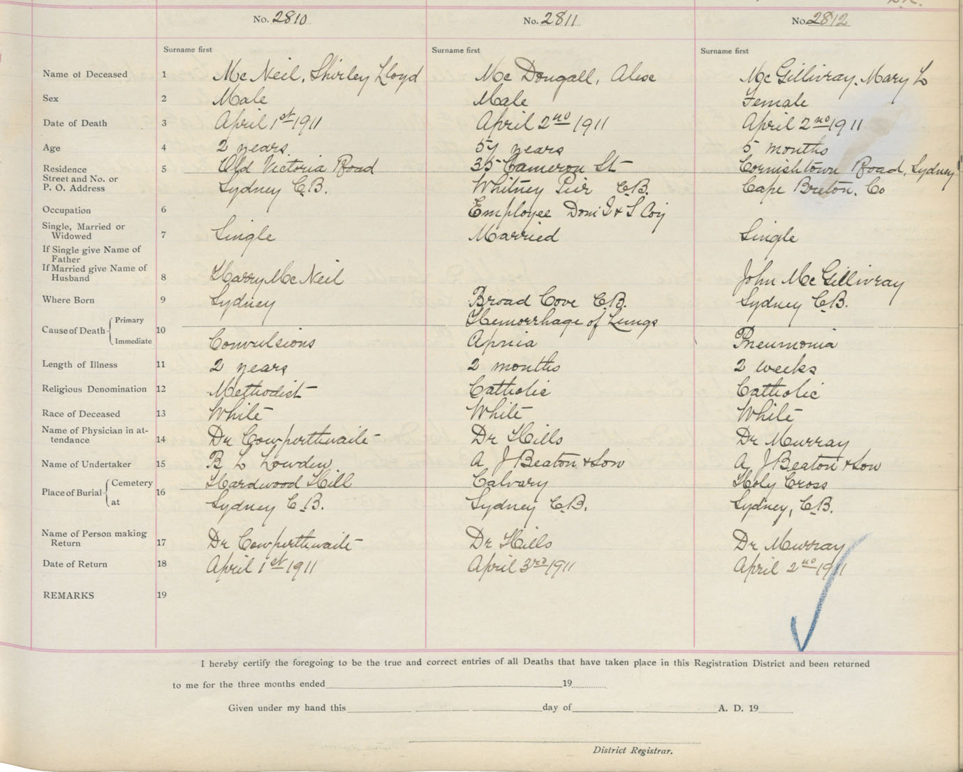Death Registration: Year: 1911 book: 3 page: 466 number: 2810