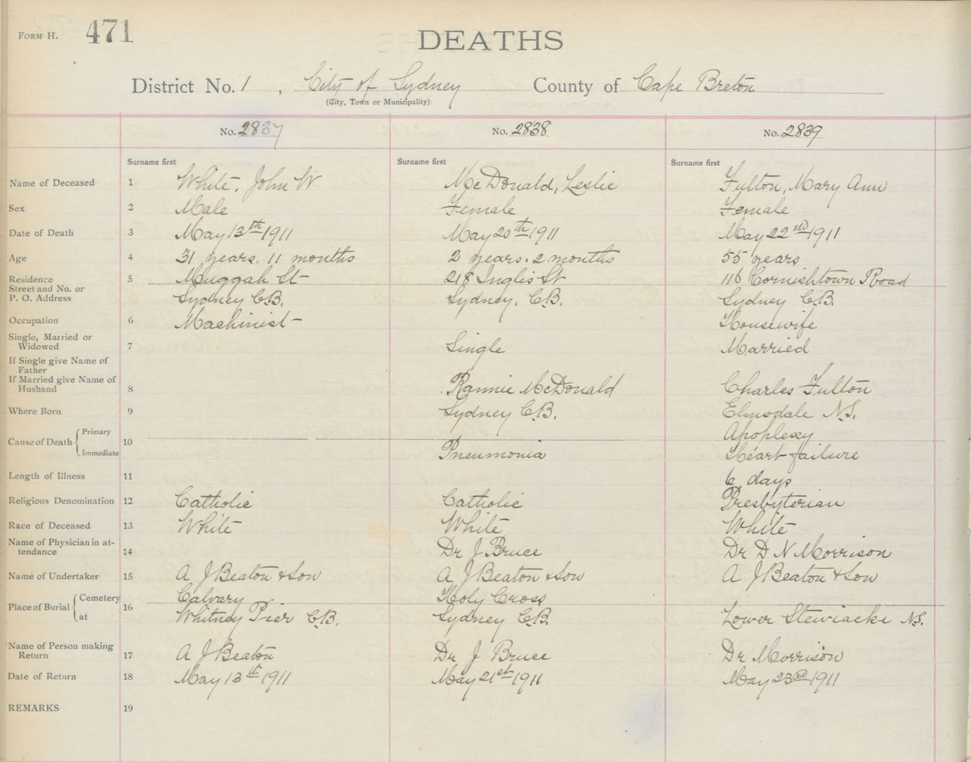 Death Registration: Year: 1911 book: 3 page: 471 number: 2837