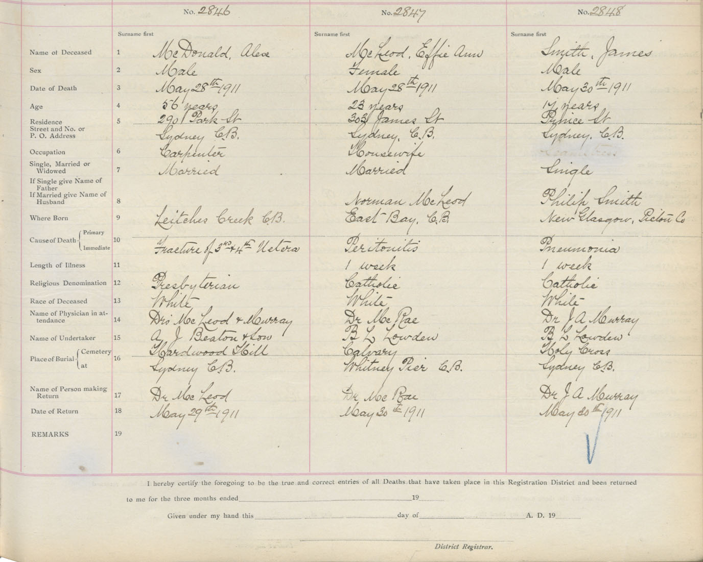 Death Registration: Year: 1911 book: 3 page: 472 number: 2848