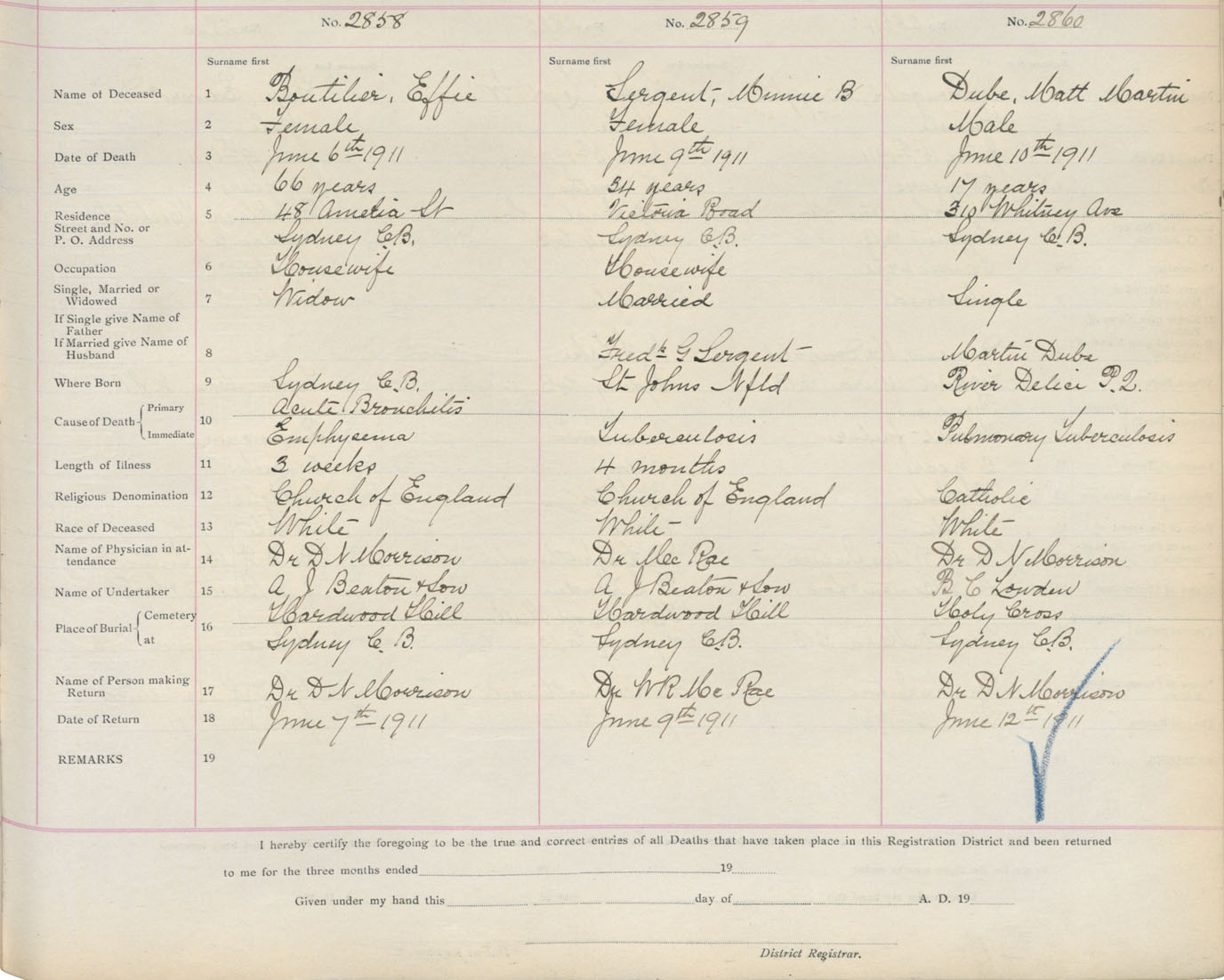 Death Registration: Year: 1911 book: 3 page: 474 number: 2860