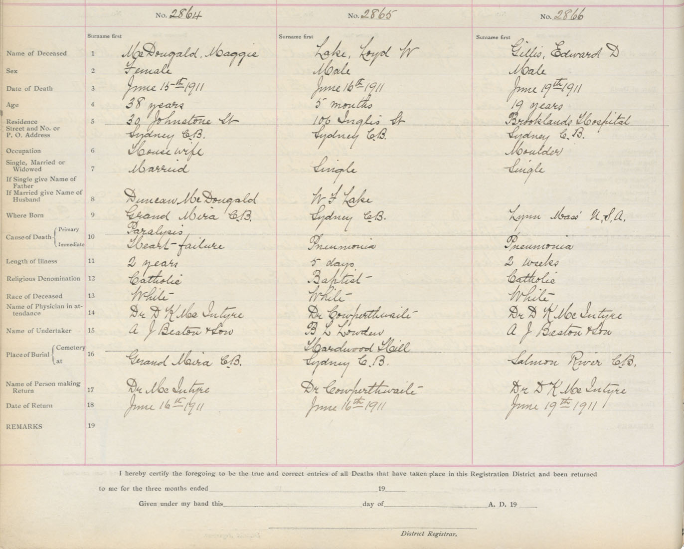 Death Registration: Year: 1911 book: 3 page: 475 number: 2866